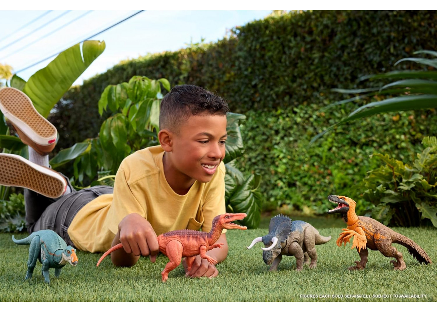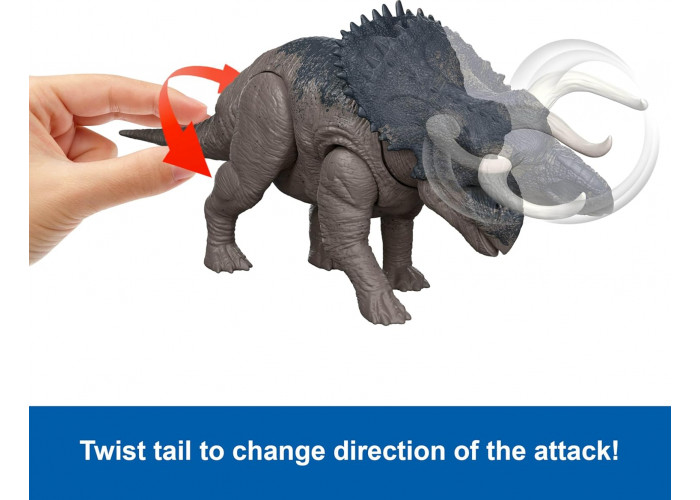 - Атака та рик. Натхнена іграшкою «Світ Юрського періоду: Відродження», ця іграшка «Дикий рик насутоцератопса» може агресивно атакувати, змінюючи напрямок, і видавати лютий рик, що робить гру з динозавром захоплюючою.