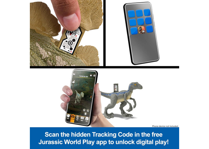 - Відкривайте і збирайте! Відсканіть прихований код відстеження динозавра в безкоштовному додатку Jurassic World Play із сумісним смартфоном (не входить до комплекту) за допомогою ігор з доповненою реальністю та створення цифрової колекції динозаврів!