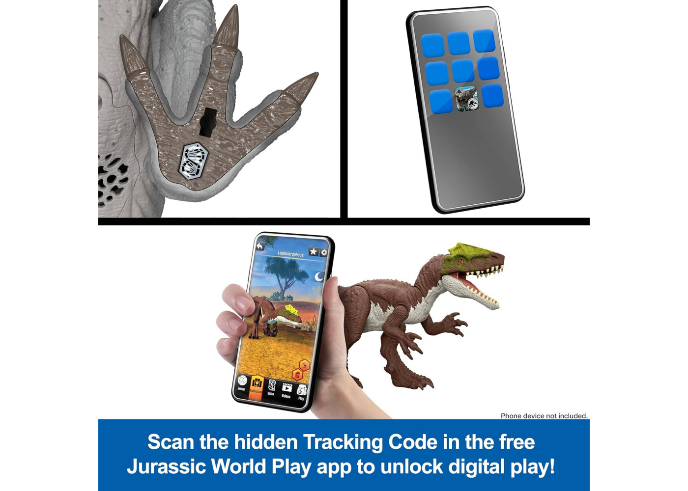 - Відскануйте та зберіть. Відскануйте код на лапі динозавра у безкоштовному додатку Jurassic World Play за допомогою сумісного смарт-пристрою (не входить у комплект) для участі у доповненій реальності та створення цифрової колекції динозаврів.