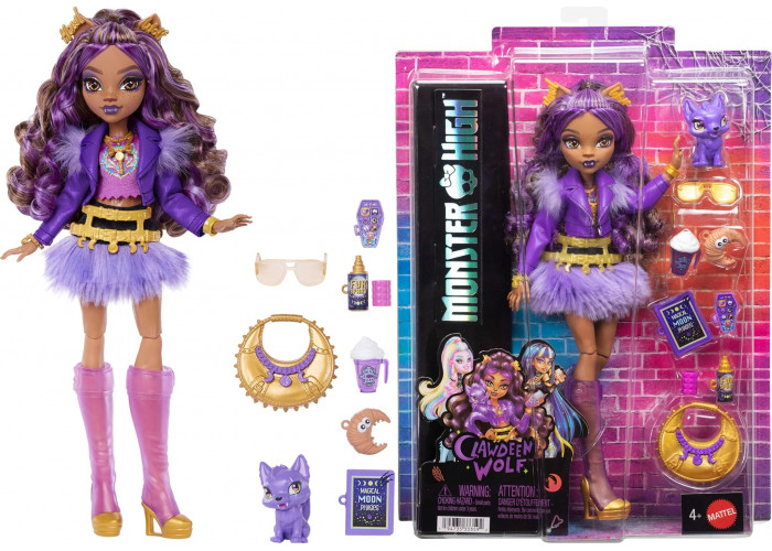 Обережно: стиль цієї ляльки Monster High настільки клоунікальний, що це лякає! Клодін Вульф неймовірно модна у своєму пухнастому фіолетовому вбранні та семи аксесуарах. До того ж, її вірне вовченя Кресент завжди поруч, щоб приєднатися до неї у всіляких місячних пригодах!