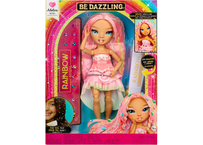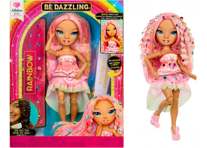 «Райдужна школа» засліплює! Дівчатка з Райдужної школи повернулися та готові сяяти як ніколи раніше в колекції Be Dazzling! Аделін Роуз, ніжна та мрійлива рожева модниця, привносить паризький шарм та кутюр у кожен сліпучий момент.