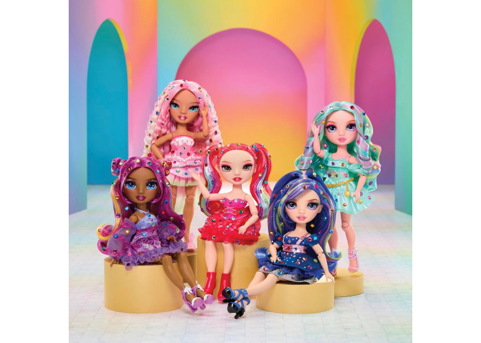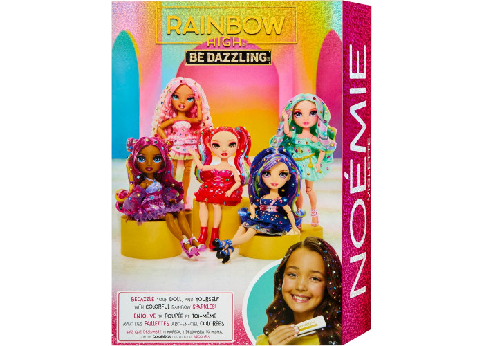 Дівчатка з Rainbow High сміливо сяють у новій лінії Be Dazzling! Тепер ви і ваша модна лялька можете сяяти з голови до ніг, прикрашена блискучими стразами. Кожна лялька постачається із стильним вбранням та зручним інструментом для прикраси стразами з логотипом Rainbow High. Прикрашайте волосся та одяг вашої ляльки – вся справа в деталях! І ви можете сяяти, прикрасивши себе відповідними стразами. Коли справа доходить до вашої сліпучої творчості — що більше, то краще! Зберіть всю команду Be Dazzling Rainbow High разом з Аделіною, Вів'єн, Селін, Женев'євою та Ноемі.