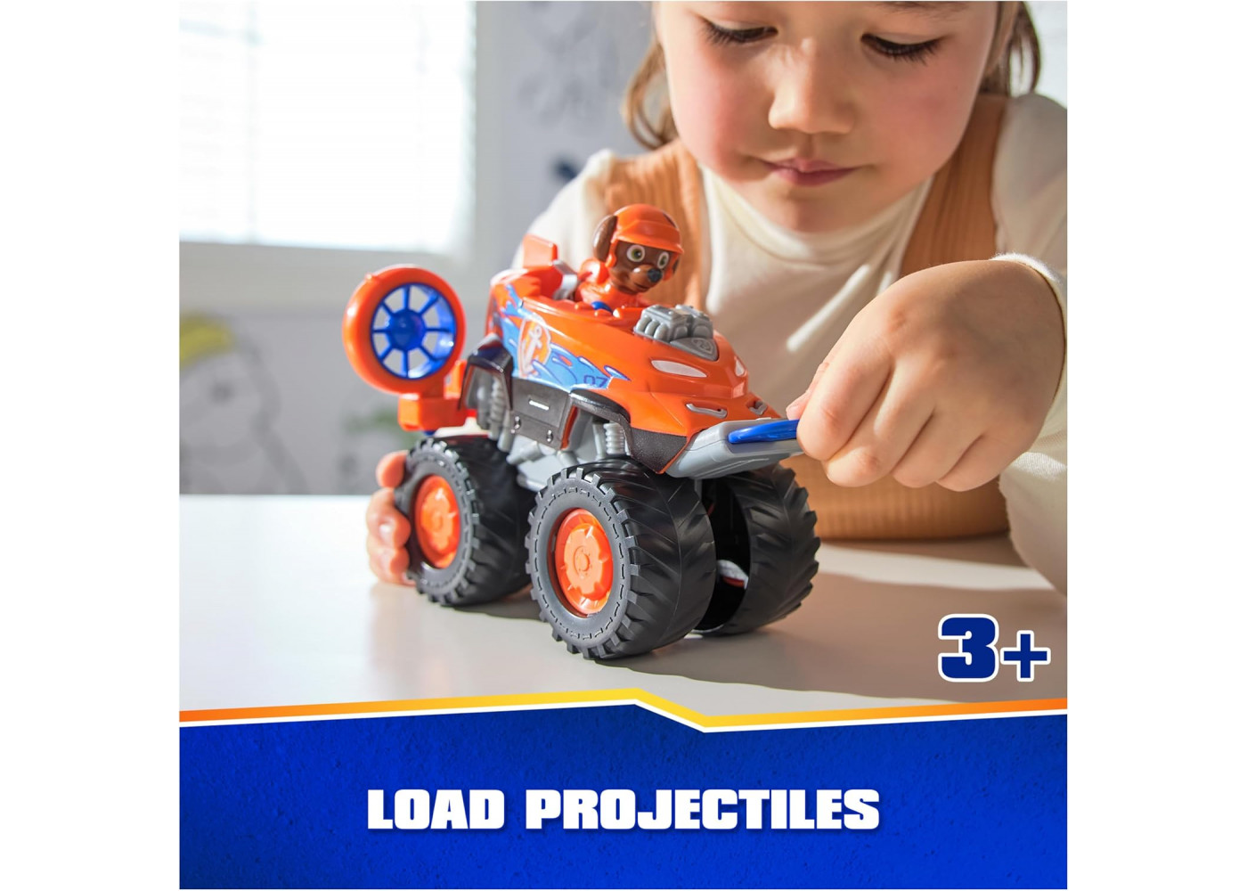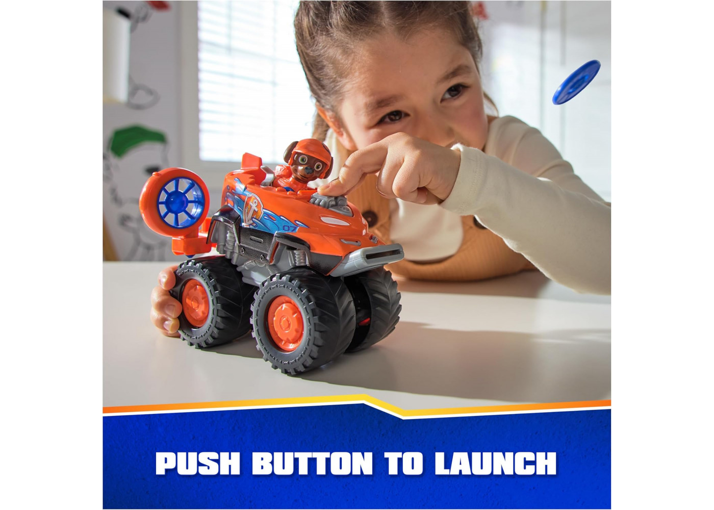 - ПУСКОВА СИСТЕМА: Монстр-трак Зуми на повітряній подушці оснащений двома снарядами та відсіком для зберігання снарядів. Завантажте снаряд у пускову установку, потім натисніть кнопку, щоб вистрілити та врятувати положення.
