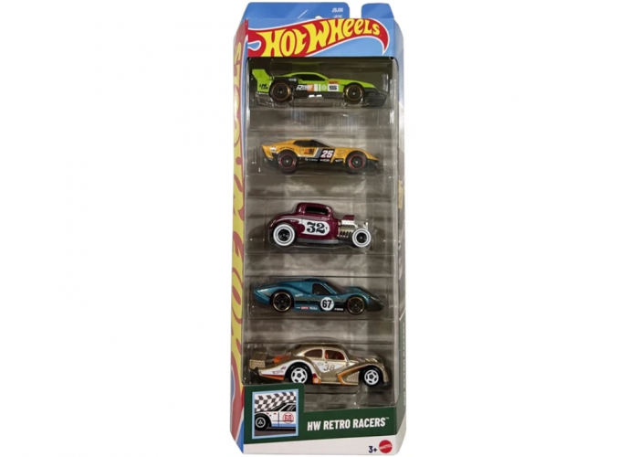 Набір Hot Wheels 5 Pack HW Retro Racers є колекцією литих моделей автомобілів у масштабі 1:64, створених за мотивами культової моделі Ford GT40. Цей набір віддає шану класичному Ford GT40 1967 року, поєднуючи ретро-дизайн із сучасними технологіями виробництва.