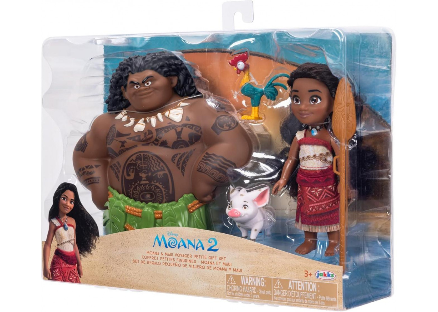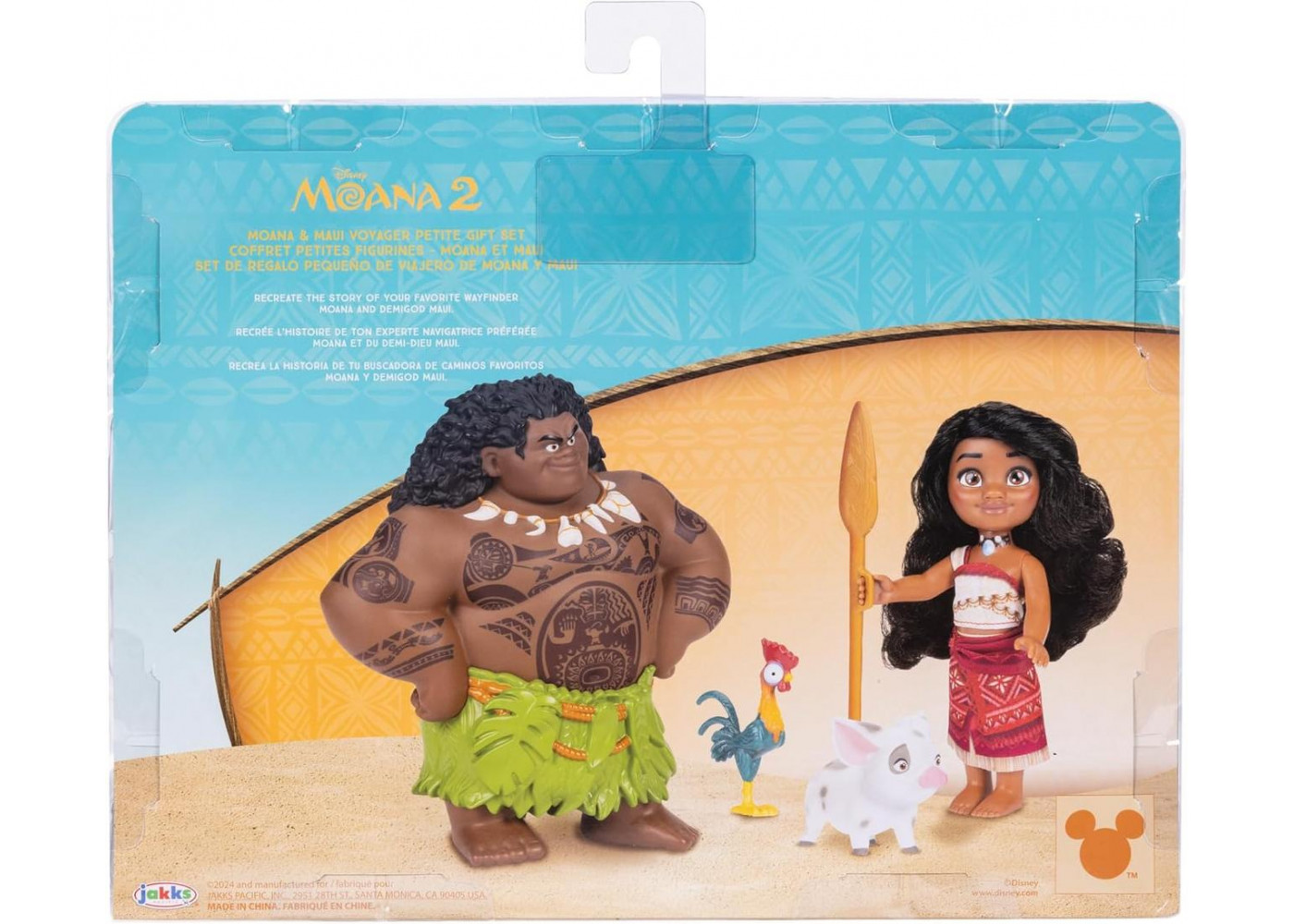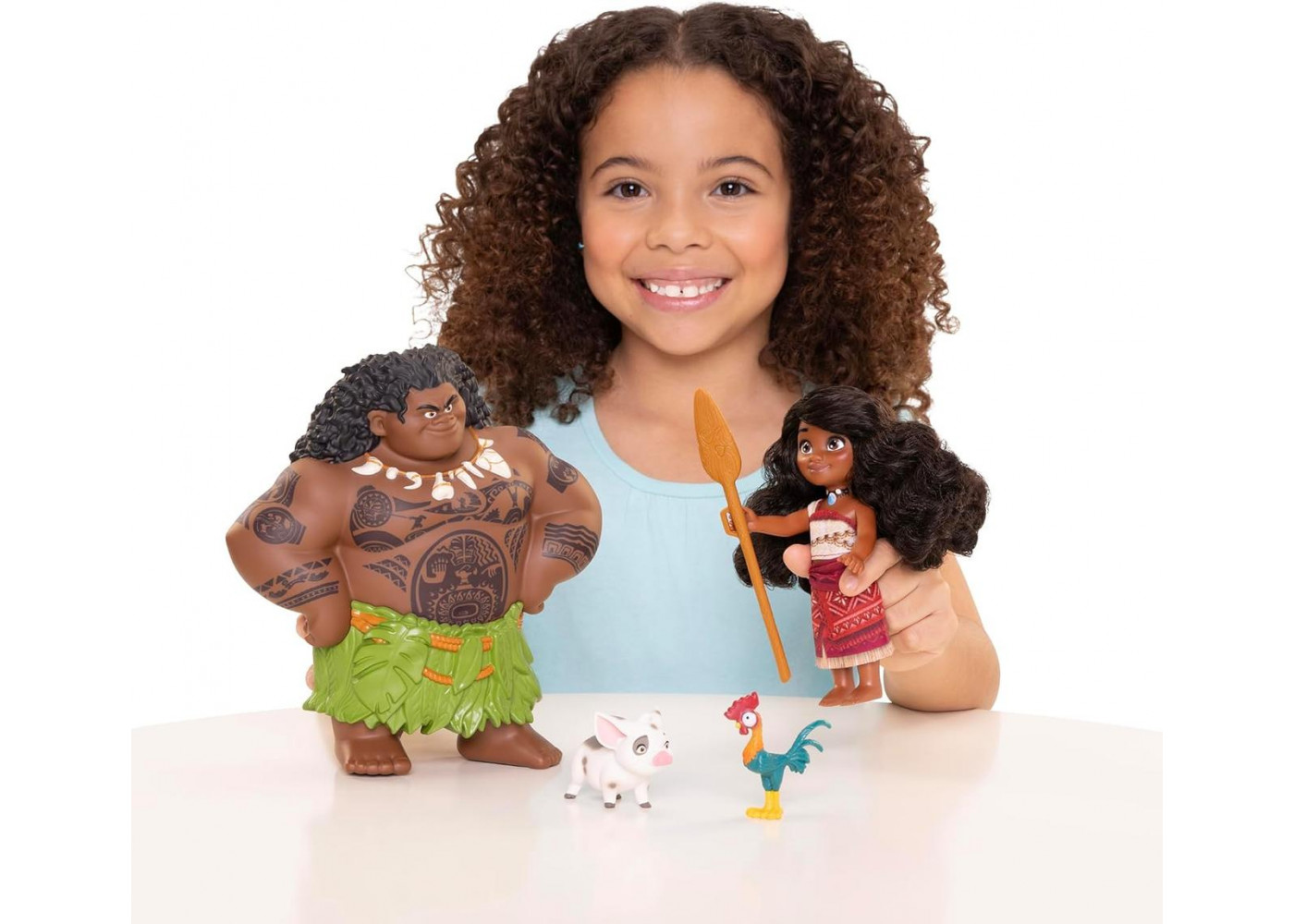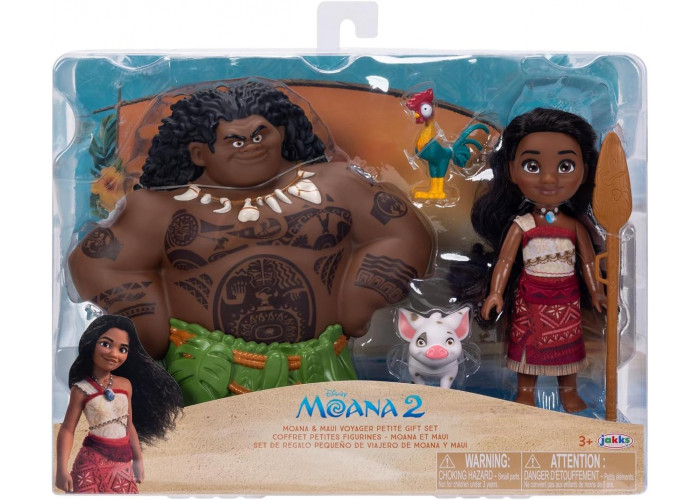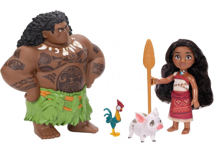 - У комплекті: 1 лялька Moana, 1 лялька Maui, 1 Pua, 1 Heihei, 1 весло Moana