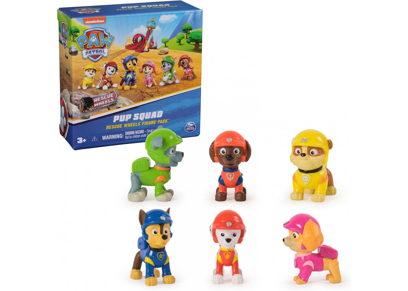 Кожна фігурка виконана в оригінальному стилі щенячого патруля: Rescue Wheels і одягнена в нову командну форму, тому всі вони виглядають так само, як у серіалі.