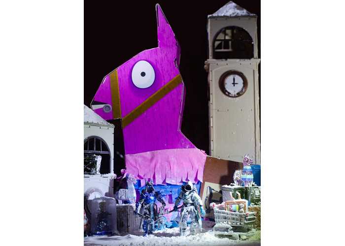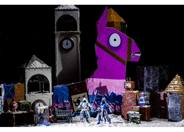 Распаковать как никогда! Пината Fortnite Jumbo Llama Loot Pinata открывается со 100 предметами, включая эксклюзивные 10-ти сантиметровые фигурки Frozen Raven и Ice King, а также множество эпического и легендарного оружия, бэк-блинга и многое другое!