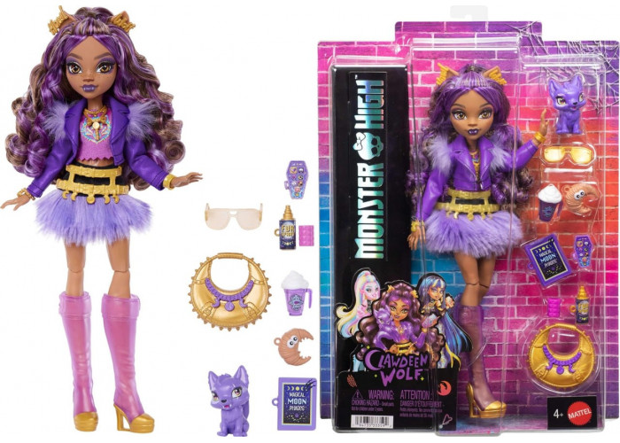 Осторожно: стиль этой куклы Monster High настолько иклоуникальный, что это пугает! Клодин Вульф невероятно модна в своем пушистом фиолетовом наряде и семи аксессуарах. К тому же, ее верный волчонок Кресент всегда рядом, чтобы присоединиться к ней во всевозможных лунных приключениях!