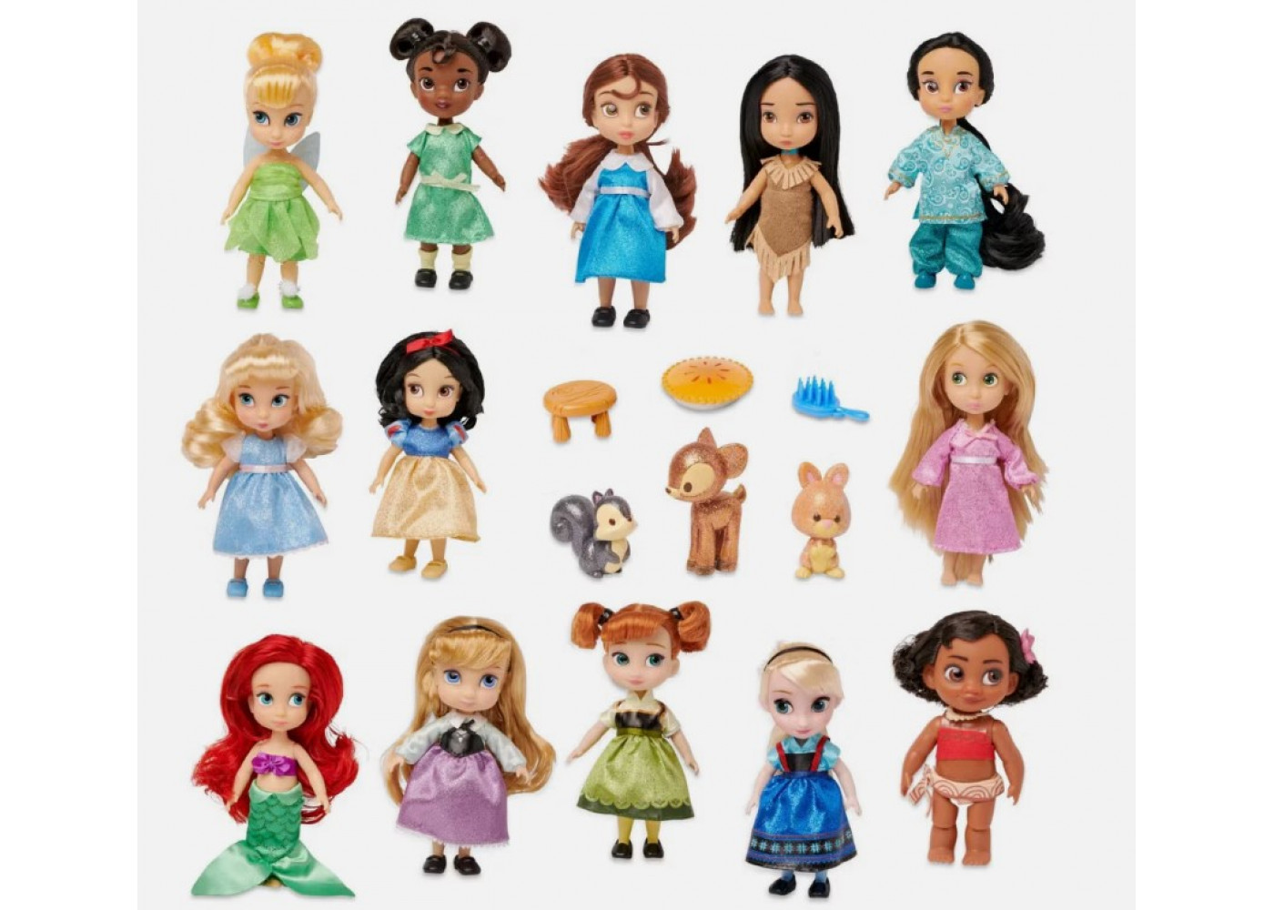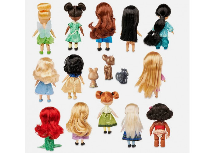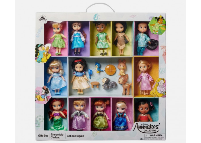 Набор из 13 мини-кукол из коллекции Disney Animators' Collection. Среди персонажей: Белоснежка, Золушка, Динь-Динь, Аврора (в роли Брайар Роуз), Ариэль (в роли Русалочки), Белль, Жасмин, Покахонтас, Тиана, Рапунцель, Анна, Эльза и Моана.