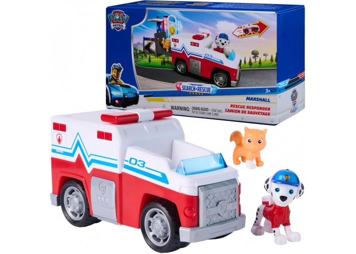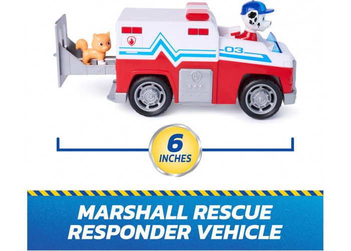 - Этот увлекательный набор включает в себя игрушечный грузовик высотой 15 см с работающими колесами и 2 фигурки, в том числе Маршалла высотой более 5 см в его форме спасателя, готового прийти на помощь.