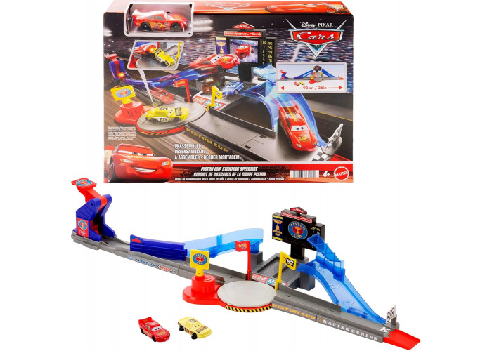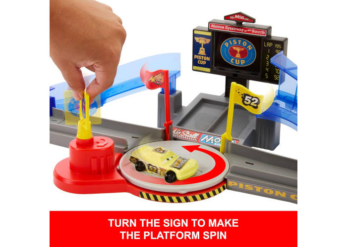 Влаштуйте гонки та зіткнення з Блискавкою МакКуїном з висунутим язиком в ігровому наборі Disney та Pixar «Тачки: Кубок Поршня»!